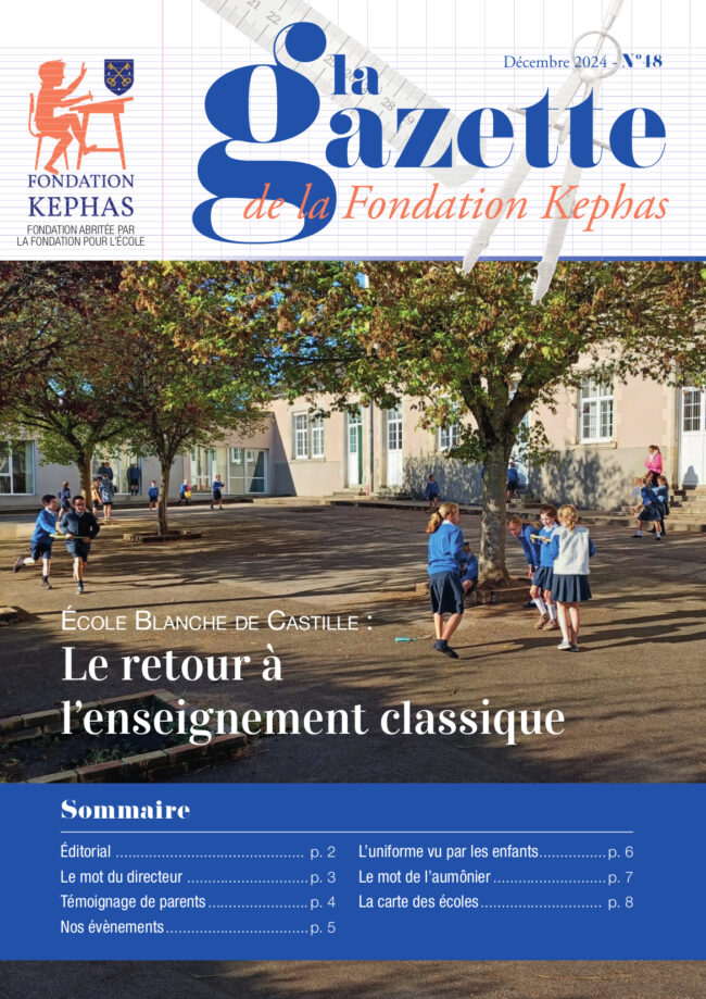 Chers bienfaiteurs, Grâce à votre soutien, notre Fondation a pu continuer à épauler financièrement la trentaine d’écoles de son réseau. Neuf ans et demi après sa création, ce sont trois millions cent mille euros d’aides qui ont pu être apportés aux écoles, que nous avons reçus pour moitié environ de nombreux dons de montants variés…